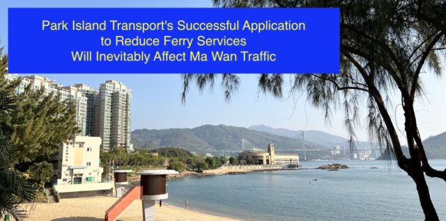 Translation to English Park Island Transport’s Successful Application to Reduce Ferry Services Will Inevitably Affect Ma Wan Traffic On June 8, the Transport Department attended a Ma Wan traffic consultation meeting, responding to Park Island Transport Co. (PITCL)’s application to Continue reading Park Island Transport’s Successful Application to Reduce Ferry Services Will Inevitably Affect Ma Wan Traffic